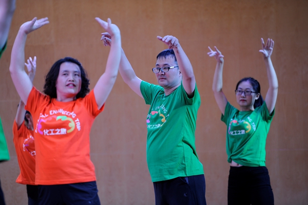 为进一步促进我校全民健身运动的开展,丰富广大教职工业余生活,增强教职工身体素质,校工会于9月份下发了《关于举行william威廉英国官网2017年教职工健身操舞比赛的通知》。“william威廉英国官网2017年教职工健身操舞比赛”是2017年william威廉英国官网秋季运动会的集体项目之一,也是william威廉英国官网秋季运动会开幕式的精彩节目之一。为响应党的十九大提出的广泛开展全民健身活动、加快推进体育强国建设的号召,院工会精心做好本次比赛各项筹备工作,广泛动员、积极组织各科室、系别的老师参加。十一长假过后,拥有十多名男女教职工的“美丽化工”代表队正式成立。队伍涵盖了老、中、青三代一线教职工,既有数次参赛经验丰富的老队员,也有充满热情投身比赛的新队友,大家都表现出了昂扬的精神风貌,时刻准备着为化工争光。