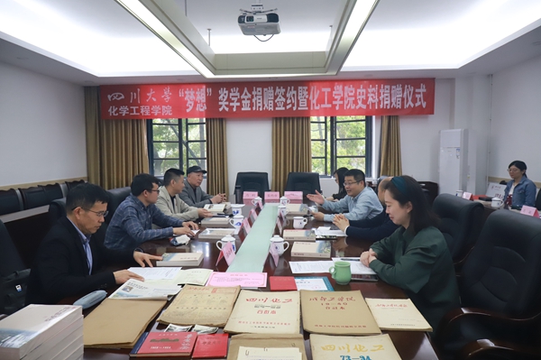 印永祥回顾了就读期间马利校友给他的深刻印象。此次捐赠的史料,有很多是建院初期的珍贵资料,非常有价值。他希望化工学子能够带着川大“厚通识、宽视野、多交叉”的烙印,树立崇高远大理想、敢于创新挑战、勇于交叉创新,成为多学科交叉融合的复合型人才。