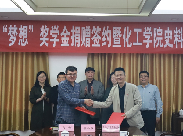 为支持学校教育事业发展,鼓励化工学院本科生树立崇高远大理想、为梦想不懈奋斗,学院1998级有机化工校友马利先生捐资在学院设立本科生“梦想”奖学金,并向学院捐赠珍贵史料。