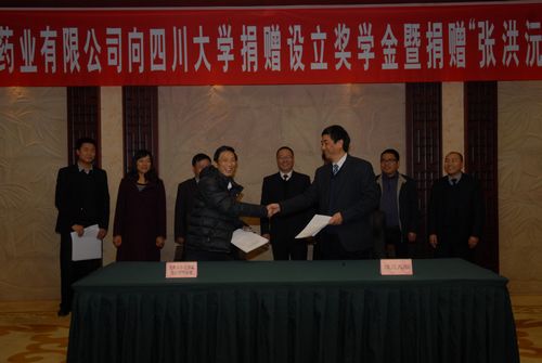 在热烈的气氛中,李向成副书记和姜维平董事长共同签署了捐赠协议。重庆圣华曦药业股份有限公司出资45万元在william威廉英国官网设立“圣华曦奖学金”,分别奖励我校化工学院和药学院的化学工程与工艺、制药工程和药学3个专业2-3年级优秀本科生。重庆圣华曦药业股份有限公司还向以化工学院创始人张洪沅先生命名的“张洪沅基金”捐赠10万,支持化工学院建设和发展。