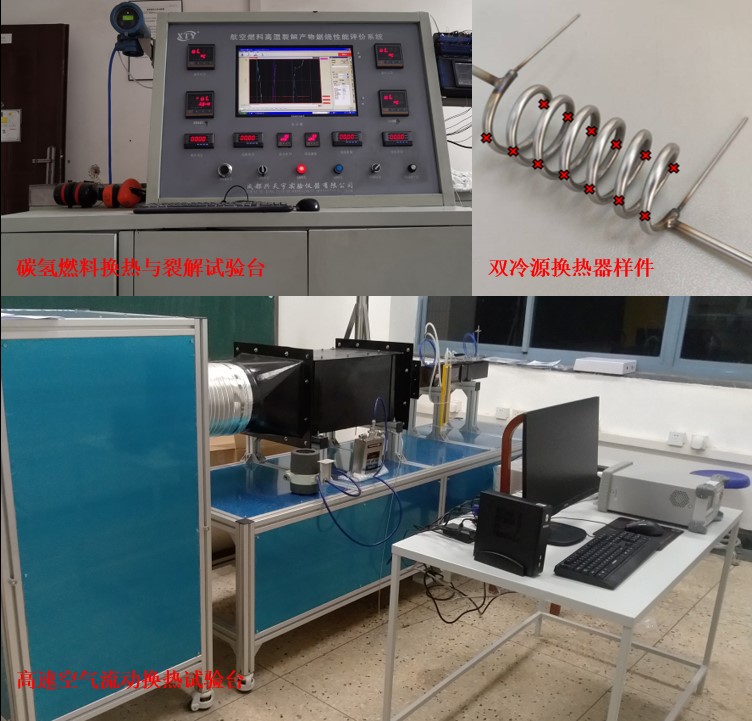 燃气涡轮-超燃冲压组合发动机是非常有应用前景的空天动力方案。其中,超燃冲压发动机燃烧室的热防护是关键问题,而基于吸热型碳氢燃料的再生主动冷却技术是目前解决该问题最为经济可靠的技术之一。对于航空燃气涡轮发动机,随着其性能的不断提高,CCA(Cooled Cooling Air)冷却技术被认为是提高高温涡轮叶片冷却的有效方法。而CCA技术的核心是以航空煤油和外涵道空气为冷源的冷却空气预冷换热器。该研究方向主要涉及碳氢燃料流动换热与裂解特性研究、碳氢燃料结焦表征与抑制、航空煤油-空气换热器开发与设计、高速流动换热特性研究等内容。此外,航空燃料催化重整制氢等新研究方向也在开拓中。