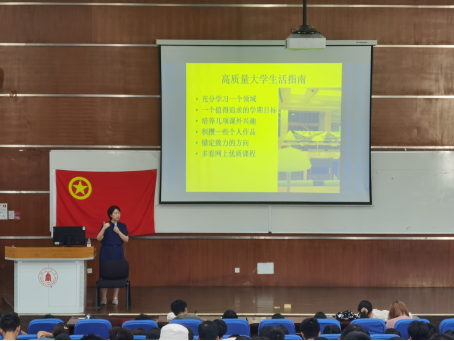 讲座接近尾声,姜利寒鼓励同学们做好当下的每一个决定并为之努力,并提出殷殷嘱托:“大一开始的日子,你也许有一点小纠结,也许有一点小困惑,也许你未来的纠结与困惑更多,但是,你有勇气承载,你有很多的方法会学会,你终会走向属于自己的坦途!”通过本次讲座,同学们对大学如何平衡学与玩有了深刻的认识,对自我发展方向有了更清晰的认知,也深深感受到了学校老师们的温暖关怀,对合理规划接下来的大学生涯充满信心!