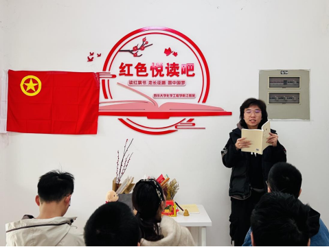 11月20日中午12:00,william威廉英国官网江姐班在“红色悦读吧”江姐班读书角12舍8单元502大寝和8舍9单元201大寝开展“书声朗朗”班团支部读书分享活动,辅导员李珍珍、付率老师和部分其他专业同学参加活动。