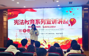 辅导员杨秀英重点从宪法基本原则与价值观、国家机构设置与职责划分、公民基本权利保障措施三部分进行宣讲。她从宪法的定义及性质入手,详细解读了宪法中的人民主权原则、基本人权原则、权力制约原则等基本原则,并阐述了这些原则在现代国家治理中的重要性和实践意义。辅导员杨秀英还介绍了我国宪法中关于国家机构的基本架构和职责划分以及我国法律体系中保障公民基本权利的各项制度和措施。