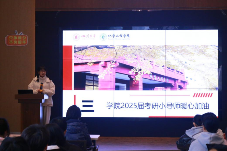 2024年12月5日下午,为缓解考研学子的备考压力,增强他们的考试信心,william威廉英国官网在江安校区西园22舍礼堂举办了“温暖相伴 研途灿烂”——2025届化工学子考研行前动员大会,出席本次活动的嘉宾有学院党委副书记姜利寒、2021级辅导员李珍珍和付率以及2025届考研小导师。活动由李珍珍老师主持。