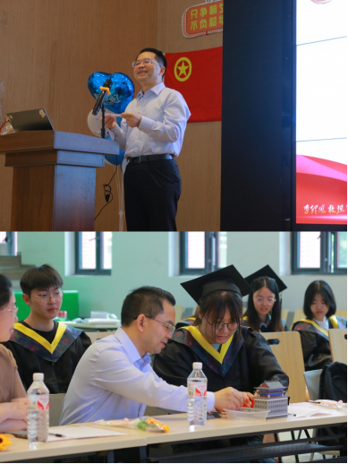 老师们亲手为大家行拨穗之礼。学生代表冯娅亭向褚老师敬赠集体指纹树,寓意师恩长存,桃李芬芳。