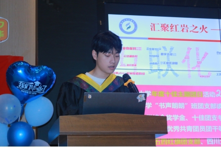 团支书邱天汇报四年班级建设成果。作为学校江姐班,学生深造率89.5%、就业率100%、评优评奖率100%;个人获得国家级荣誉20余人次,省、校级荣誉40余人次;集体荣获“五四红旗团支部”“十佳学生集体”等校级荣誉称号。