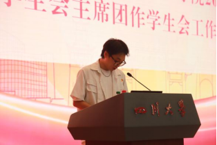2024-2025学年学生会主席陈正轩代表2024-2025学年学生会向大会作了主题为“聚焦‘三力一度’,践行团学育人,为全面推进学院‘一流学科’建设,实现中华民族伟大复兴中国梦贡献青春力量”的工作报告。