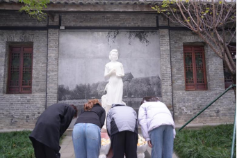 班长黄杨煦飞作为学生代表向江姐雕像献花