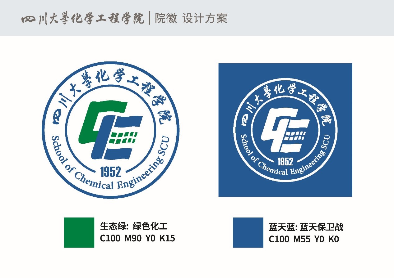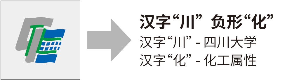 三条波浪线寓意涓涓细流汇入广阔大海,契合川大校训:海纳百川;三条波浪线更代表化工人70年来秉承的办学理念:立足基础、面向工业、服务社会。