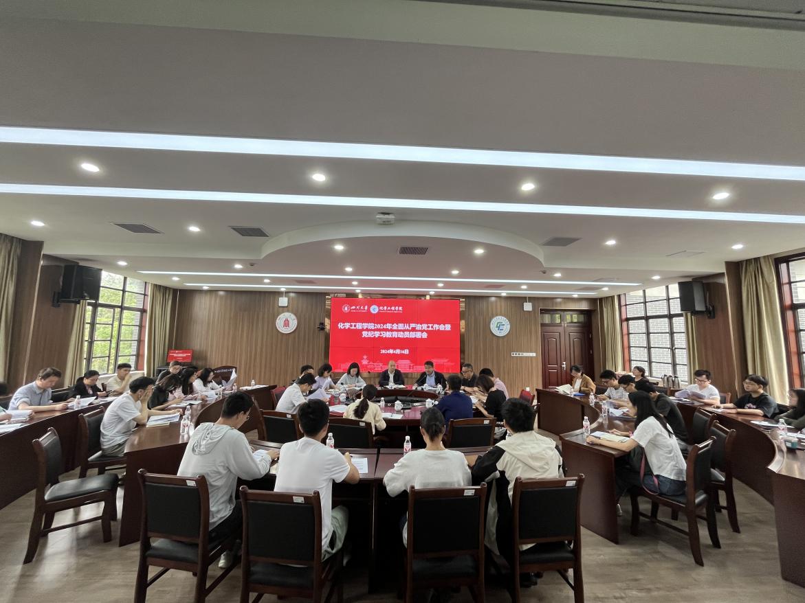 4月16日,学院在望江校区化工学院312会议室组织召开2024年全面从严治党工作会暨党纪学习教育动员部署会。院党委书记李天友、党委副书记兼纪委书记李德富、党委副书记姜利寒,专职组织员陈晓东,工会主席穆畅道,有关科室负责人、各党支部书记和纪检委员等参加会议。李德富主持会议。