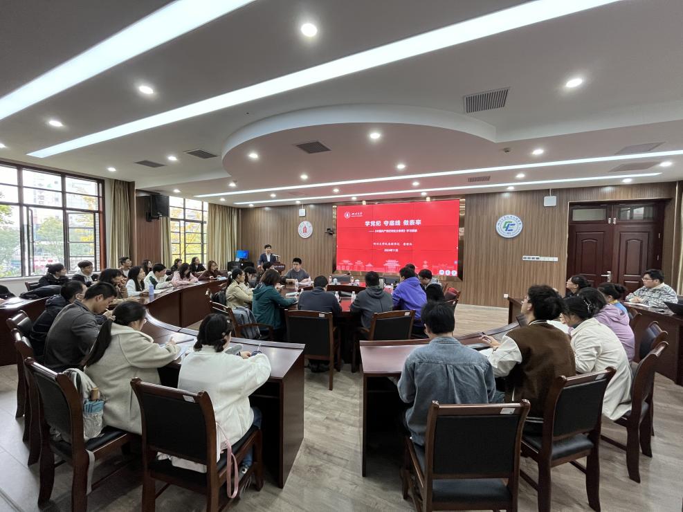 唐世红以《学党纪守底线做表率——《中国共产党纪律处分条例》学习解读》为题,从“《中国共产党纪律处分条例》的诞生及历次修订、常用概念辨析、重要条款解读”等方面,结合高校领域违反纪律处分条例和教师职业行为十项准则的典型案例,面向党员师生开展专题培训和警示教育。他强调,新征程上,党纪始终是最好的“防护栏”。党纪学习教育是党中央部署的一项重要政治任务,全体师生党员要自觉将纪律要求内化于心、外化于行,以实际行动为学校加快推进中国特色世界一流大学建设和教育强国建设作出新的贡献。