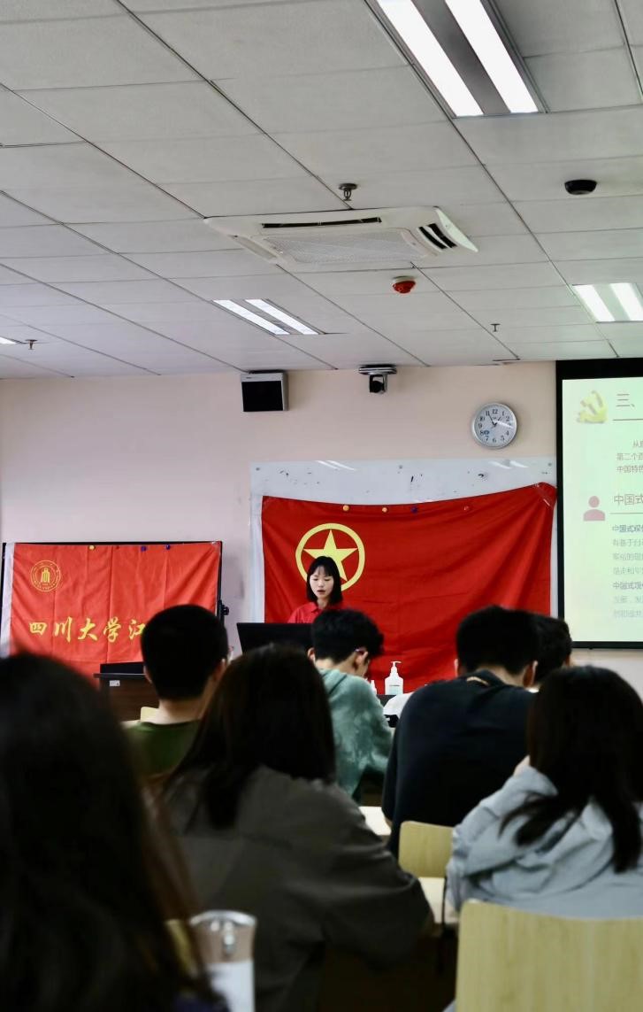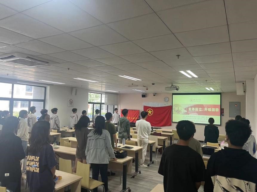 活动由互联化工1班团支部书记邱天主持开场,介绍完本次团日活动的流程后带领两团支部成员齐唱团歌,旨在提高青年团员的思想觉悟,加强团员对共青团认识,为接下来习近平新时代中国特色社会主义思想主题教育学习打好思想基础。