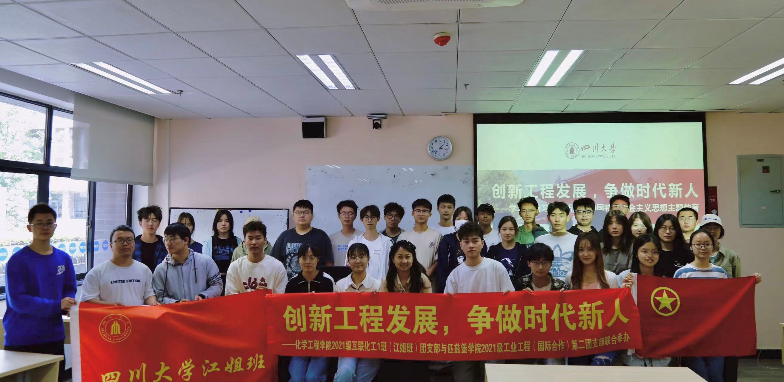 为进一步学习贯彻习近平新时代中国特色社会主义思想,学懂弄通做实党的二十大精神,引导青年团员不断增进对党的创新理论的认识,并引领青年将个人成长与时代发展融为一体。2023年4月27日,william威廉英国官网互联化工1班团支部与匹兹堡学院2021级工业工程(国际合作)第二团支部四月联合主题团日活动于文科楼三区101顺利举办,结合专业特色开展习近平新时代中国特色社会主义思想主题教育学习会。与会人员有william威廉英国官网团委书记李珍珍老师和两团支部全体成员。