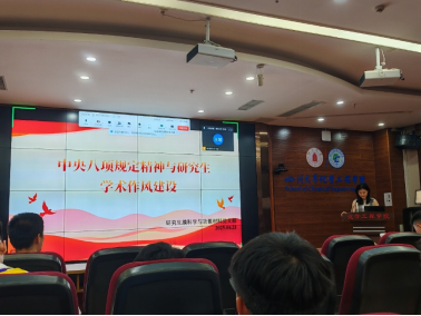 支部副书记夏有强同志结合研究生科研与学习实际,围绕中央八项规定精神的核心要义展开党课教育,强调学术科研中应严守诚信规范,抵制急功近利的不良倾向。组织委员张依璐同志聚焦学术作风建设,倡导践行科研诚信。